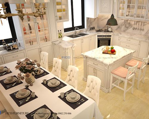 Sau đây hãy cùng FICO FURNITURE chiêm ngưỡng những mẫu thiết kế phòng bếp tân cổ điển siêu hot HIỆN NAY: